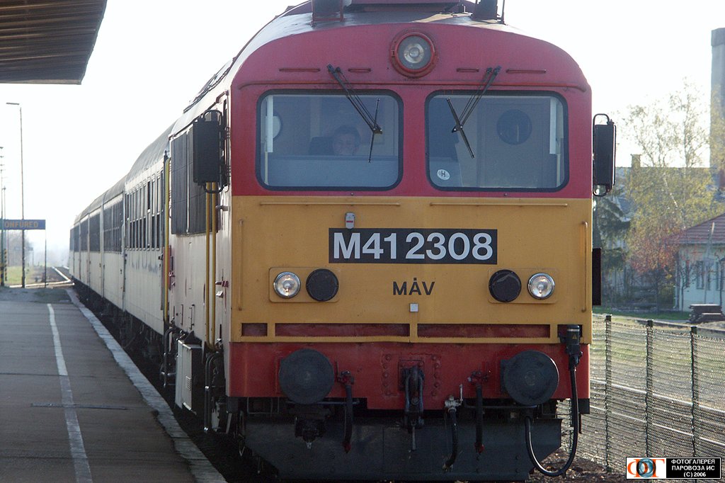 | Тепловоз M41-2308 с поездом Тапольца - Будапешт, ст. Балатонфуред, Венгрия Автор: АСЯ | Фото сделано 6.IV.2006, опубликовано 29.III.2007.