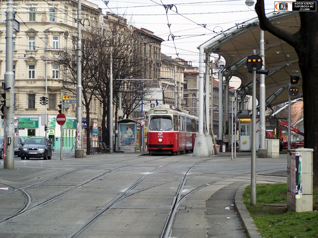 | Трамвай типа E1 с прицепным вагоном типа C, Урбан-Лориц Плац, Вена, Австрия Автор: Зинькевич Ю. | Фото сделано 23.III.2007, опубликовано 3.IV.2007.
