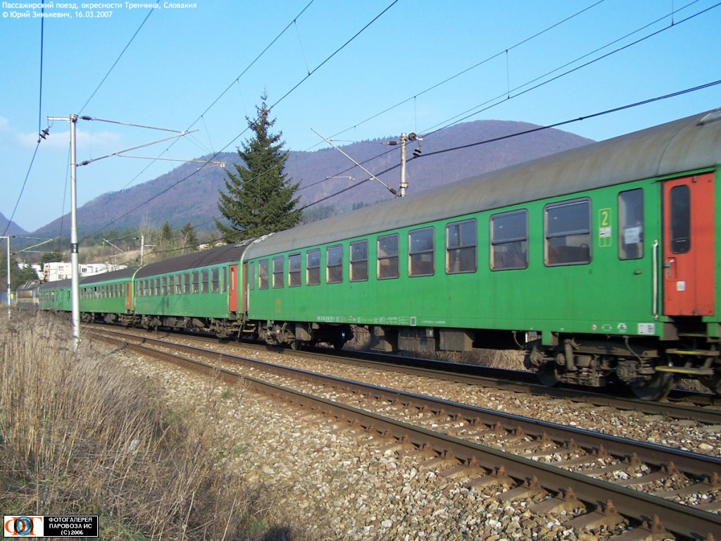 | Пассажирский поезд, перегон Поважска-Бистрица - Поважска-Тепла, Словакия Автор: Зинькевич Ю. | Фото сделано 16.III.2007, опубликовано 6.IV.2007.