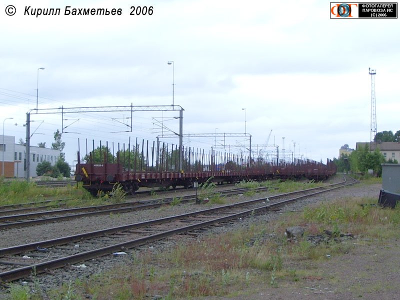 | Платформы для перевозки леса, ст. Котка, Финляндия Автор: Кирилл Бахметьев | Фото сделано 24.VII.2005, опубликовано 22.IX.2006.