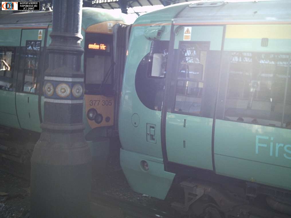 | Восьмивагонный электропоезд 377-305 сцеплен из двух четырехвагонных, Великобритания Автор: Alex | Фото сделано 12.VIII.2007, опубликовано 13.VIII.2007.