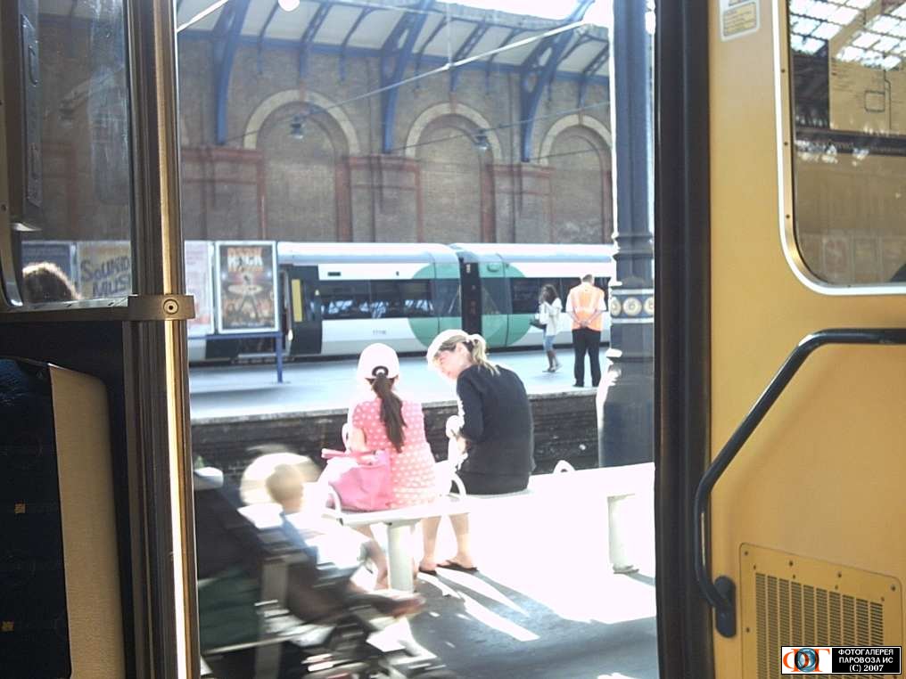 | Вид из поезда компании "Фёрст Кэпитал Коннект" на поезд компании "Саузерн" в Брайтоне, Великобритания Автор: Alex | Фото сделано 12.VIII.2007, опубликовано 13.VIII.2007.