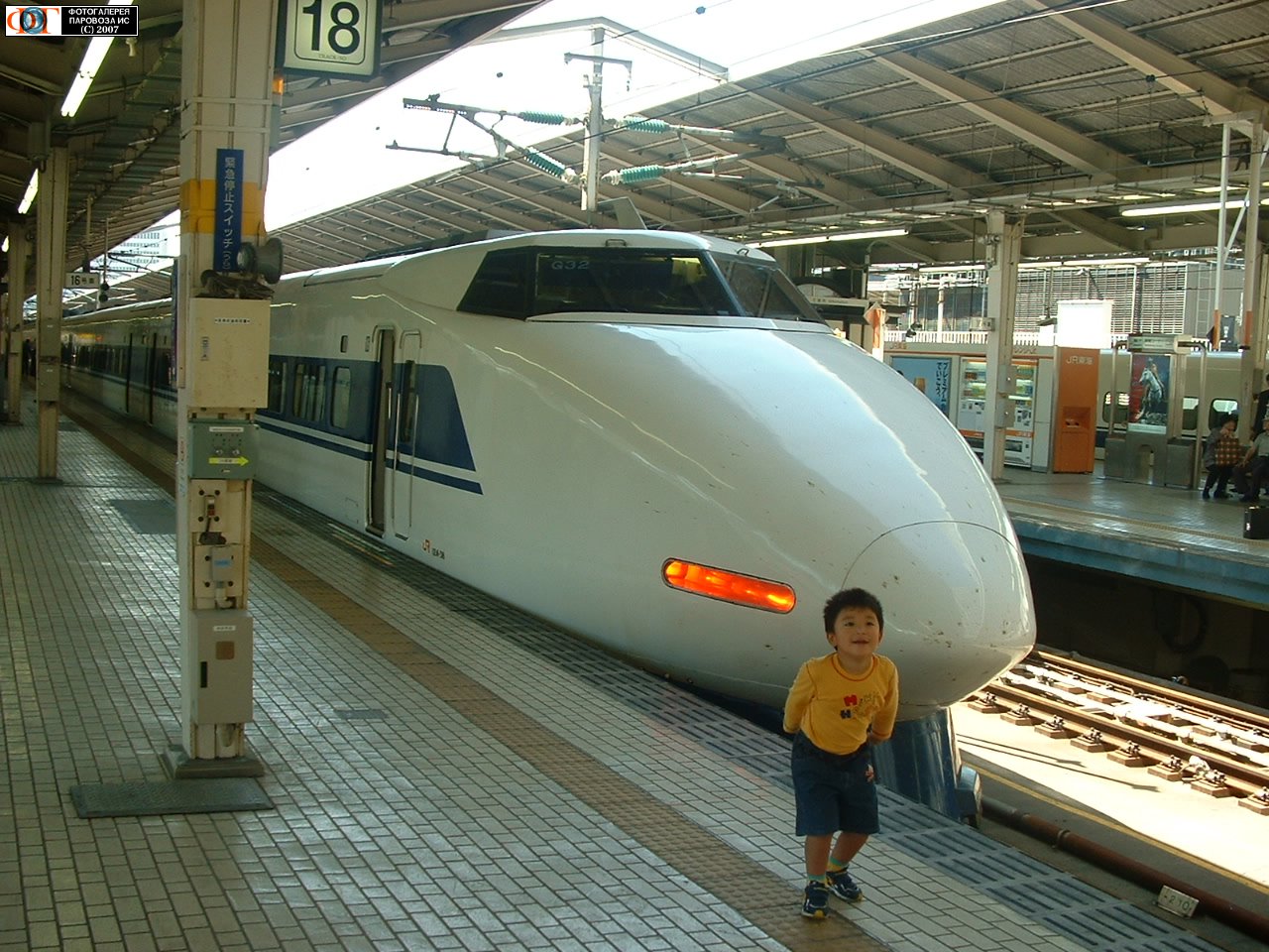 | Скоростной поезд "Синкансен" (Shinkansen) и молодой любитель поездов, ст. Токио (Tokyo sta), Токио, Япония Автор: bangkokdave | Фото сделано X.2002, опубликовано 27.VIII.2007.