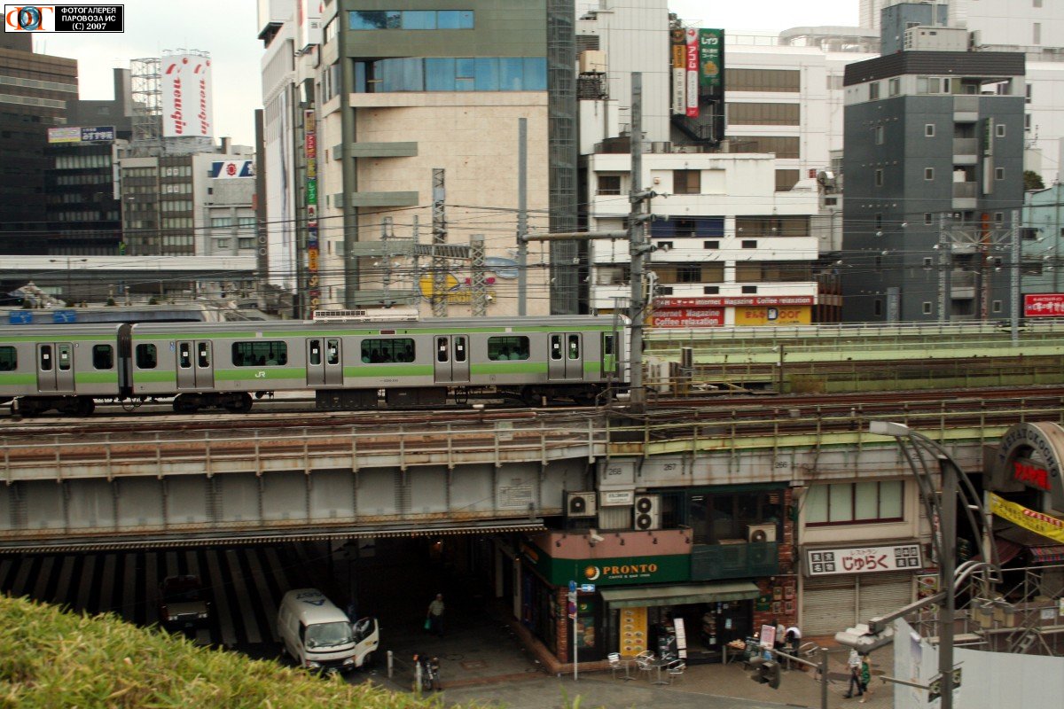| Электропоезд линии Яманотэ на ст. Уэно, Токио, Япония Автор: Зиновьев Д. | Фото сделано 19.VIII.2007, опубликовано 31.VIII.2007.