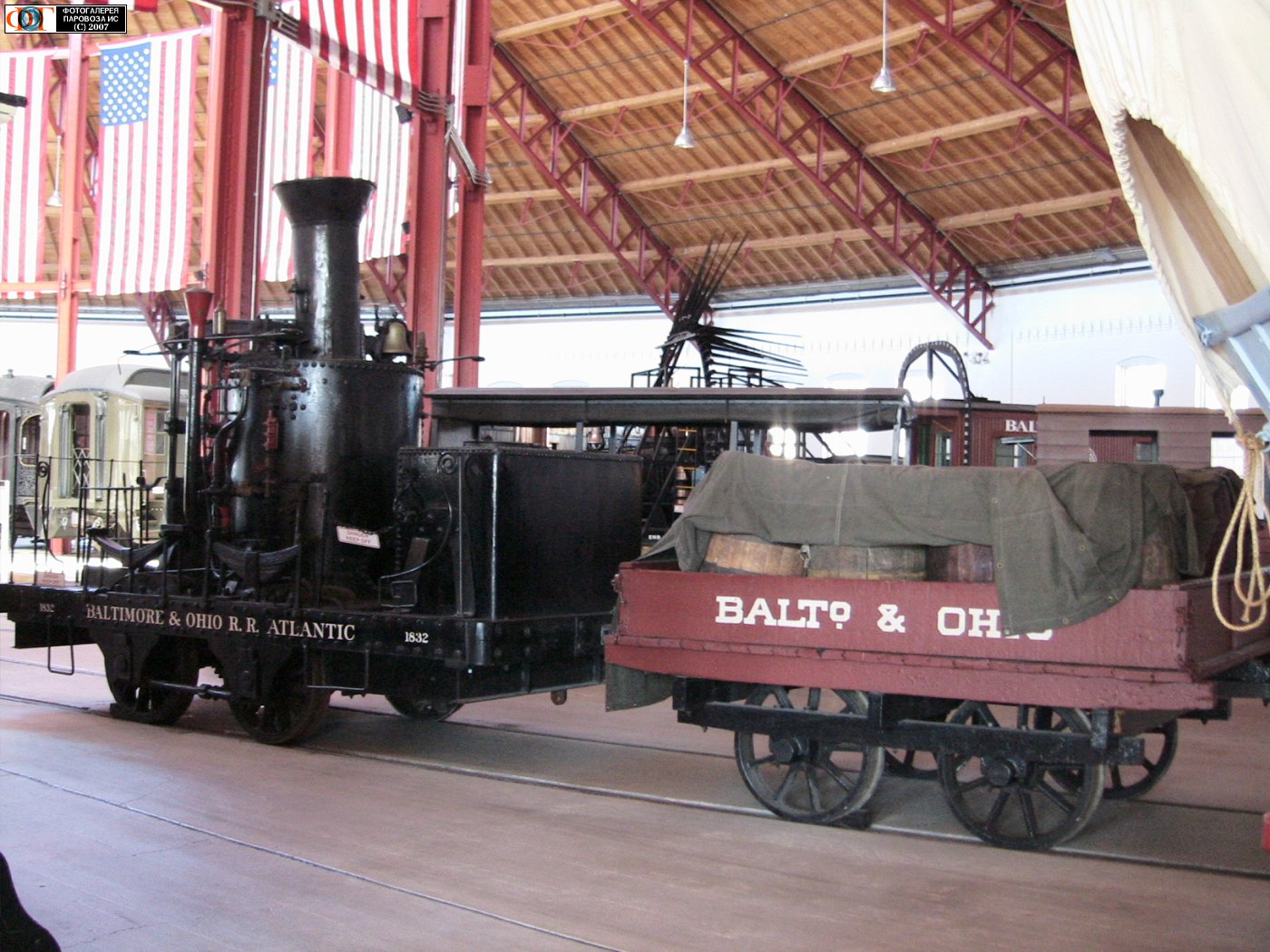 | Паровоз Atlantic-02 типа 0-2-0 компании "B&O" 1832 года с платформой 1830 года. Музей ж.д. "Балтимор и Огайо", Балтимор, США/Мэриленд Автор: Александр Белоусов | Фото сделано 1.IX.2007, опубликовано 7.IX.2007.