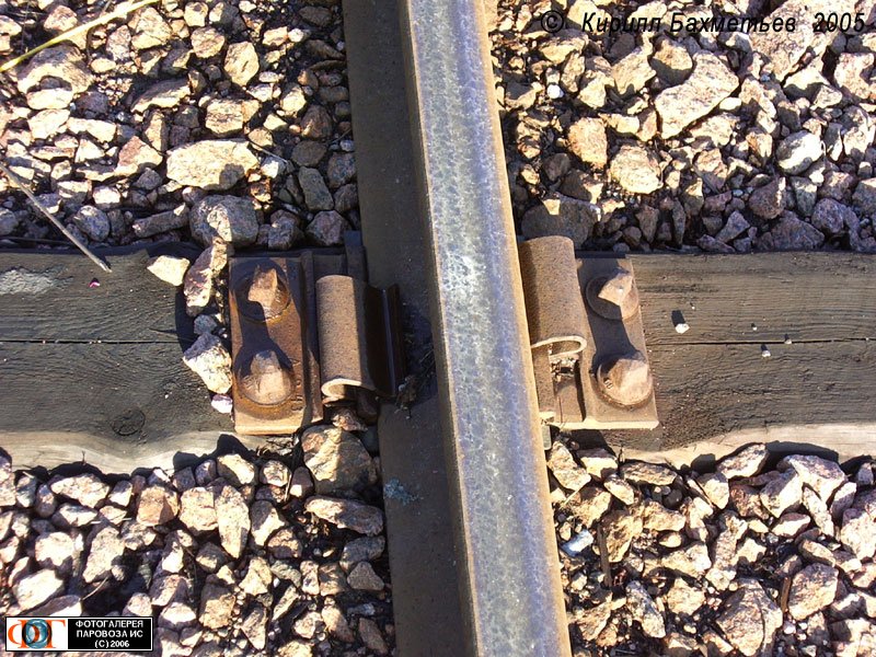 | Крепление рельса к шпале, ст. Котка, Финляндия Автор: Кирилл Бахметьев | Фото сделано 23.VII.2005, опубликовано 25.IX.2006.