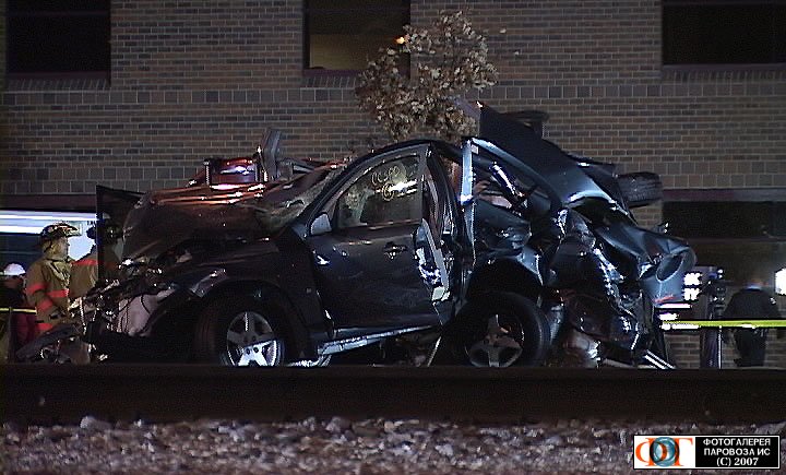 | "Пожевал и выплюнул". Столкновение на переезде. Линия Чикаго - Биг Тимбер (MD-W). Элмвуд-Парк, Чикаго, США/Иллинойс Автор: Роман | Фото сделано 21.XI.2005, опубликовано 1.X.2007.