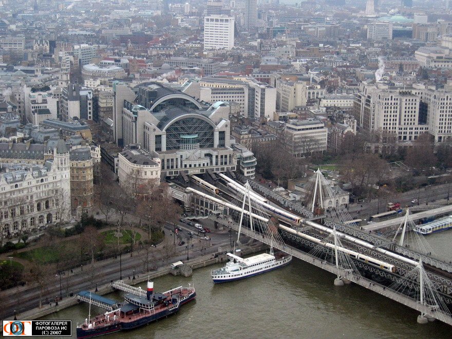 | Вокзал Черинг-Кросс (Charing Cross Station) и железнодорожный мост Хангерфорд-Бридж (Hungerford Bridge), Лондон, Великобритания Автор: bangkokdave | Фото сделано 29.XII.2005, опубликовано 14.X.2007.