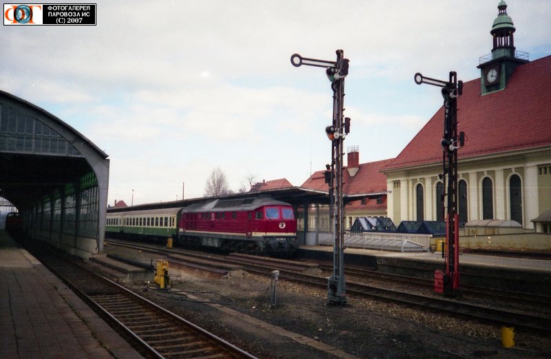 | Тепловоз BR-232 "Людмила" и семафоры. Ст. Герлитц, Германия/Саксония Автор: М.Шварц | Фото сделано III.1997, опубликовано 18.XI.2007.