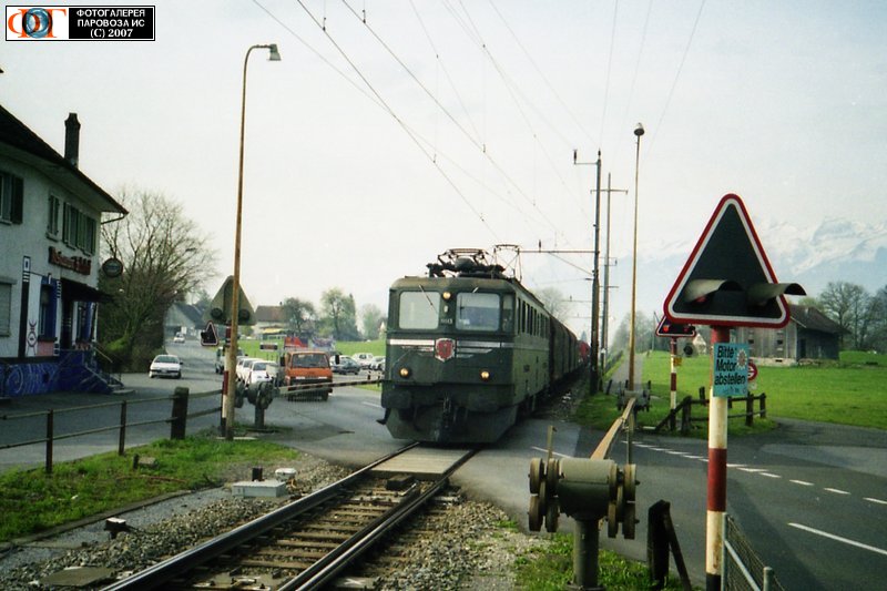 Грузовой поезд на переезде (вероятно, Нендельн), Лихтенштейн