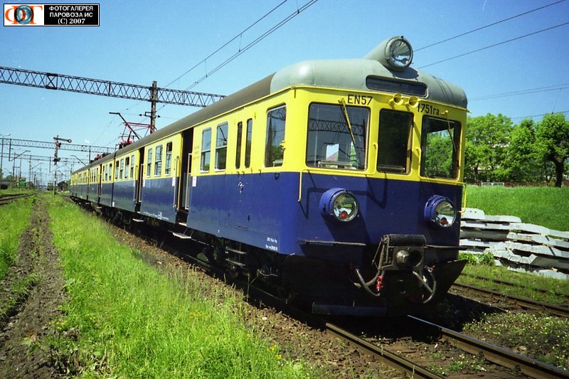 | Электропоезд ЕN57-1751 во время обкатки после капремонта. Ст. Минск-Мазовецкий, Польша Автор: М.Шварц | Фото сделано V.1999, опубликовано 6.XII.2007.