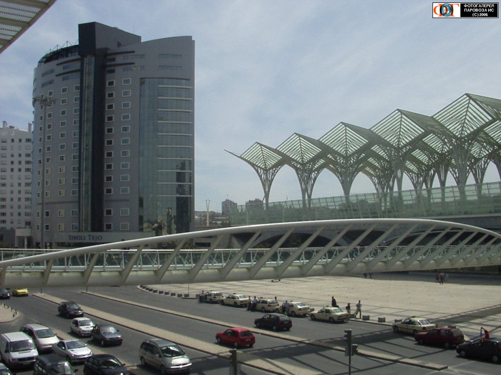| Дебаркадер станции Ориенте (справа), Лиссабон, Португалия Автор: Сергей Рублёв | Фото сделано 30.VI.2002, опубликовано 27.IX.2006.