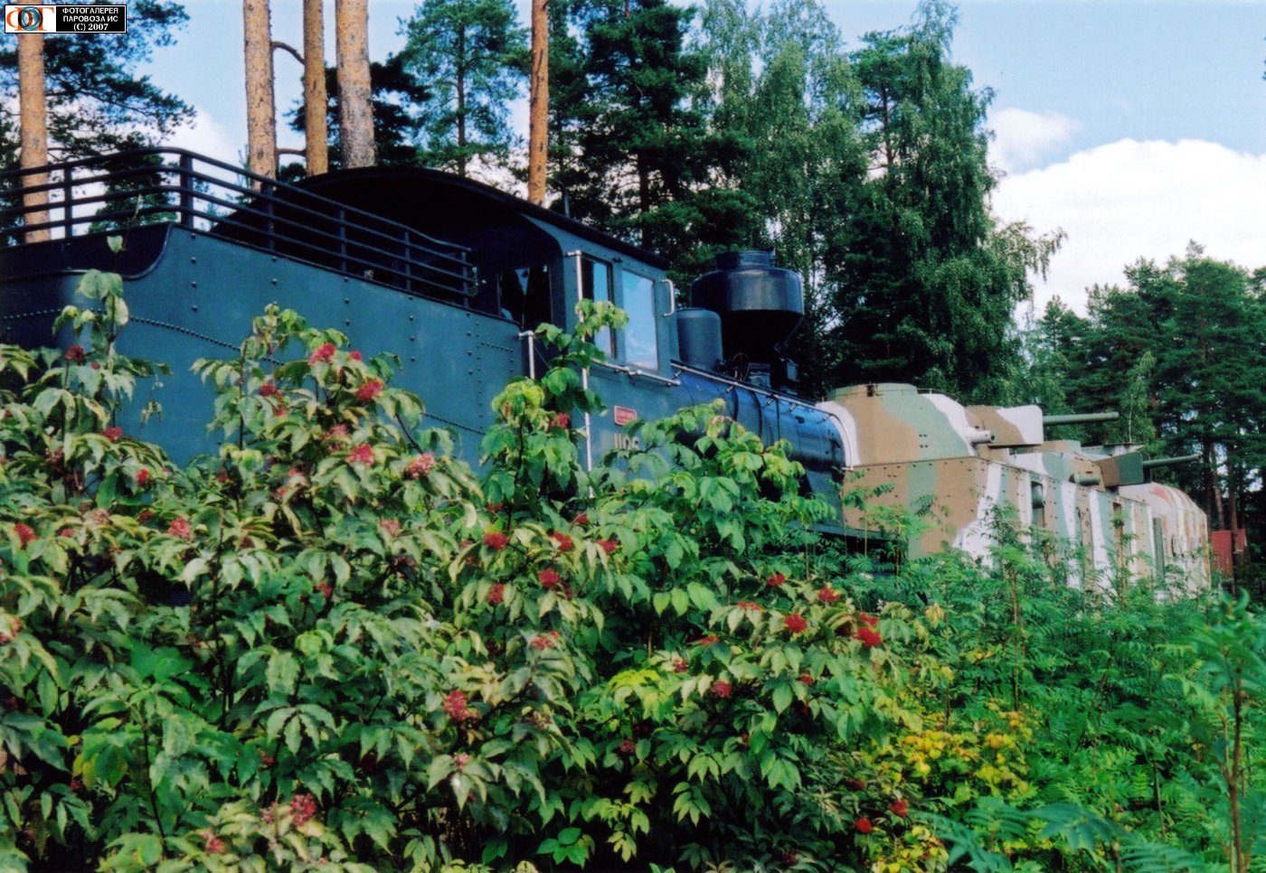 | "Замаскировался". Бронепоезд с паровозом Tk3-1106. Музей бронетанковой техники Парола. Хяме, Финляндия Автор: Шитов Дмитрий | Фото сделано 15.VIII.2002, опубликовано 15.XII.2007.