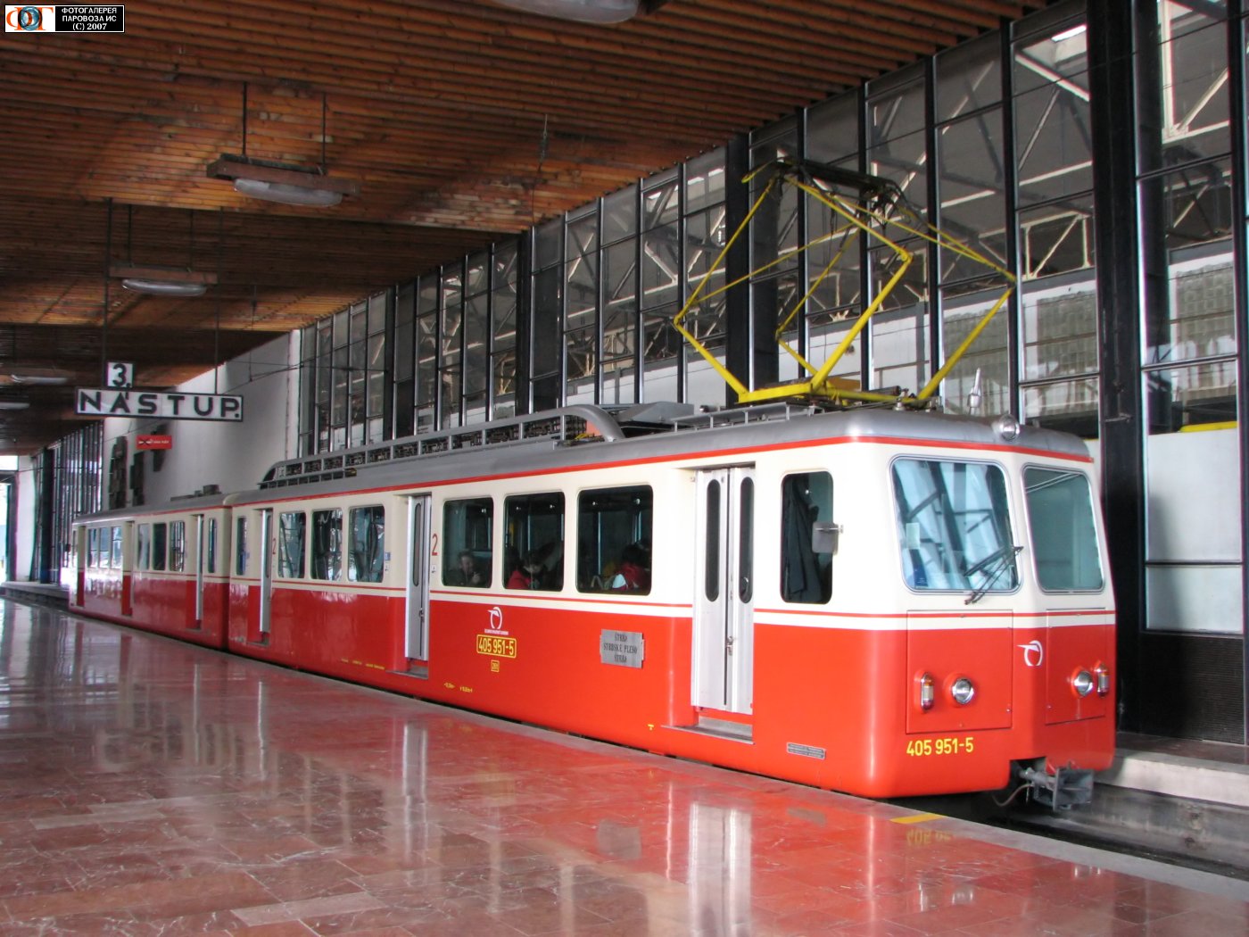 | Электропоезд 405.951-5 зубчатой дороги Штрбa - Штрбске-Плесо на станции Штрба, Словакия Автор: Алексей | Фото сделано 5.I.2008, опубликовано 9.I.2008.